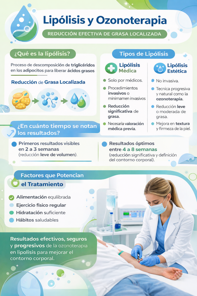 La lipólisis, especialmente cuando es estimulada mediante ozonoterapia, representa una opción eficaz, segura y progresiva para la reducción de grasa localizada. Su capacidad para actuar sobre el metabolismo, mejorar la oxigenación y favorecer la eliminación de lípidos la convierte en una herramienta clave dentro de la medicina estética moderna.